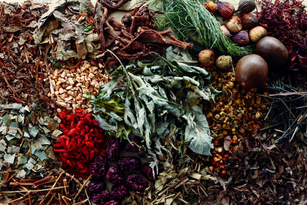 煮出された野草が甕に注がれると、ゆるやかに温もりを